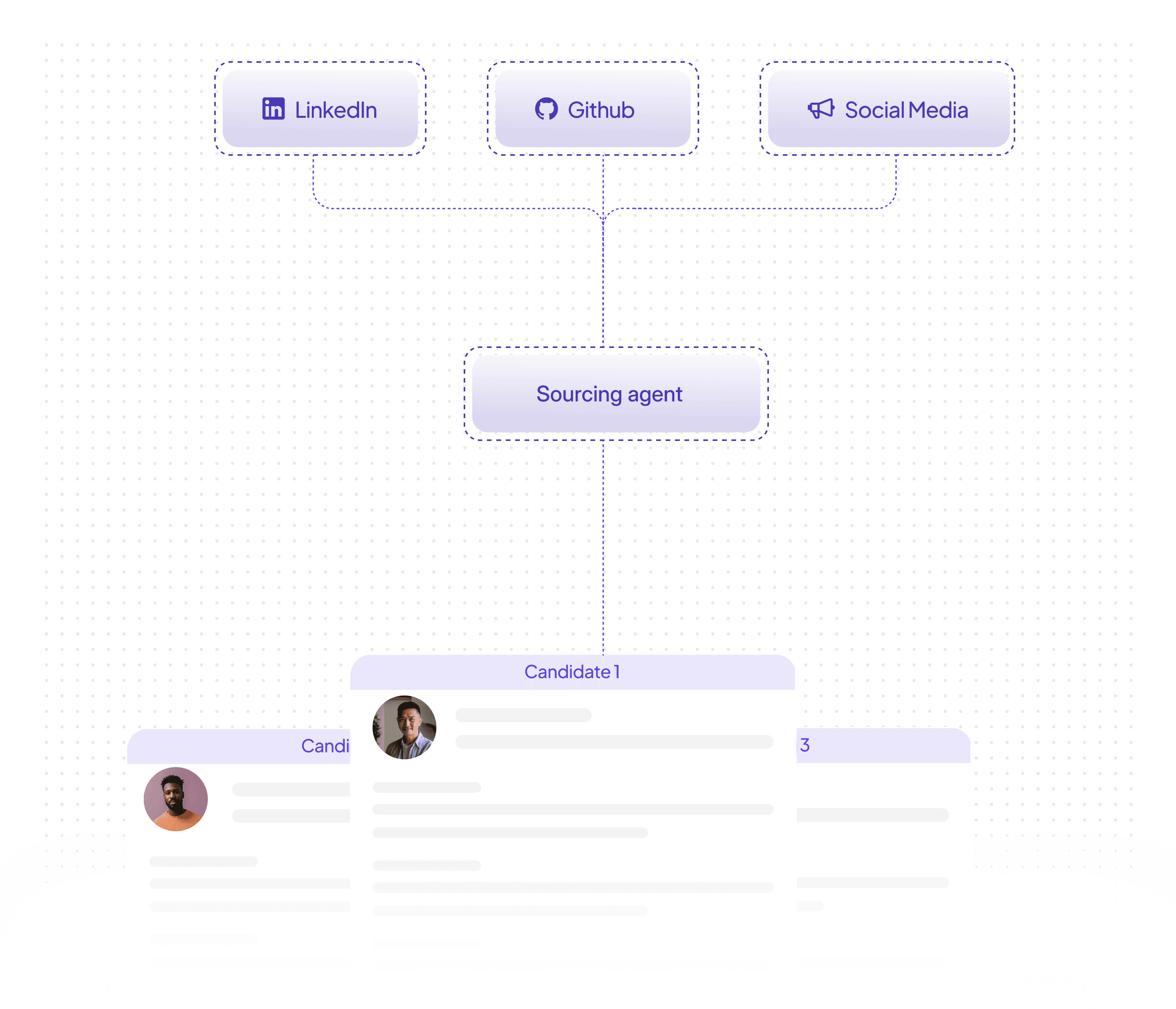 Scans LinkedIn, GitHub, research papers, portfolios, and public work samples to find candidates before they even apply to a job posting.
