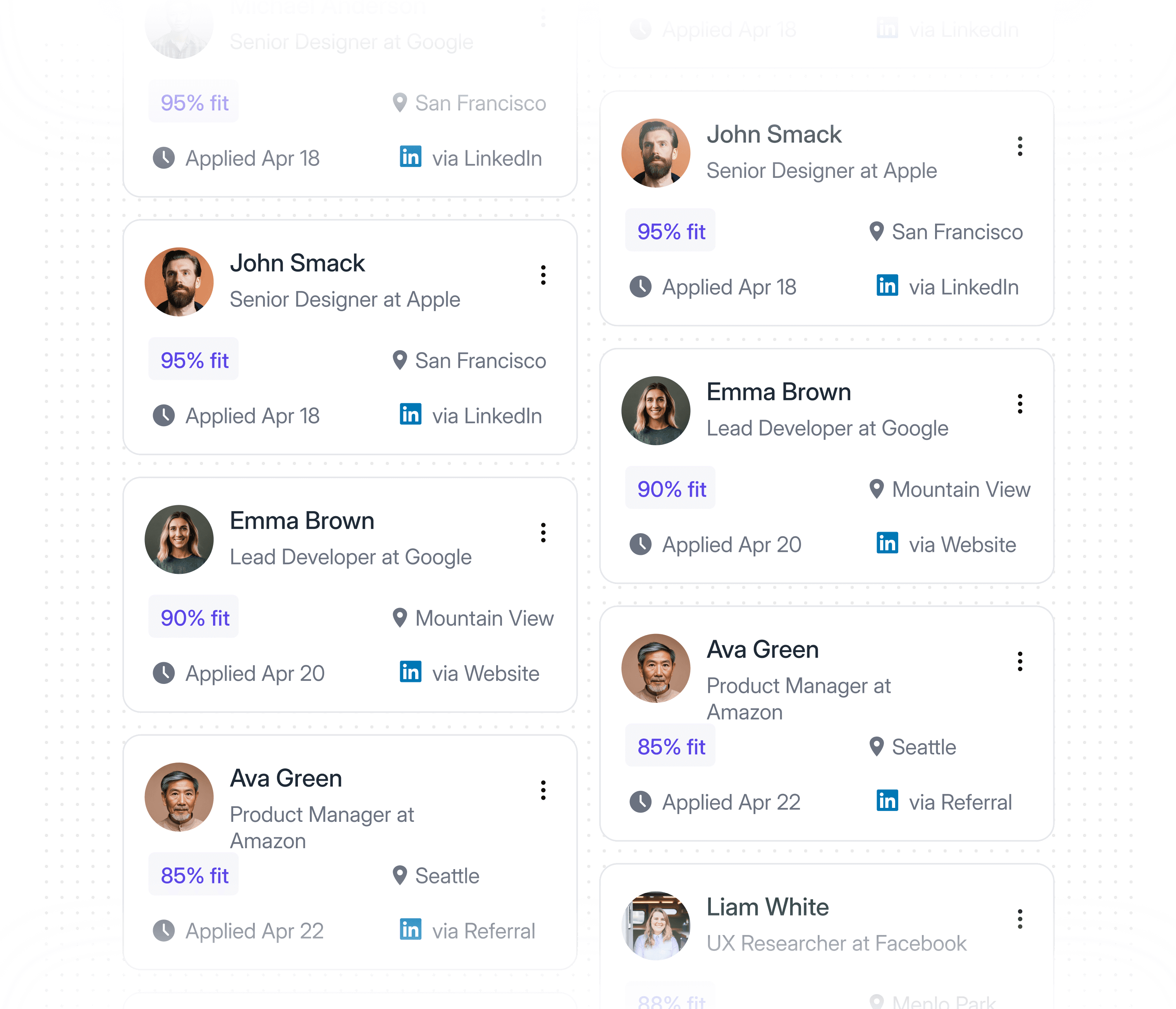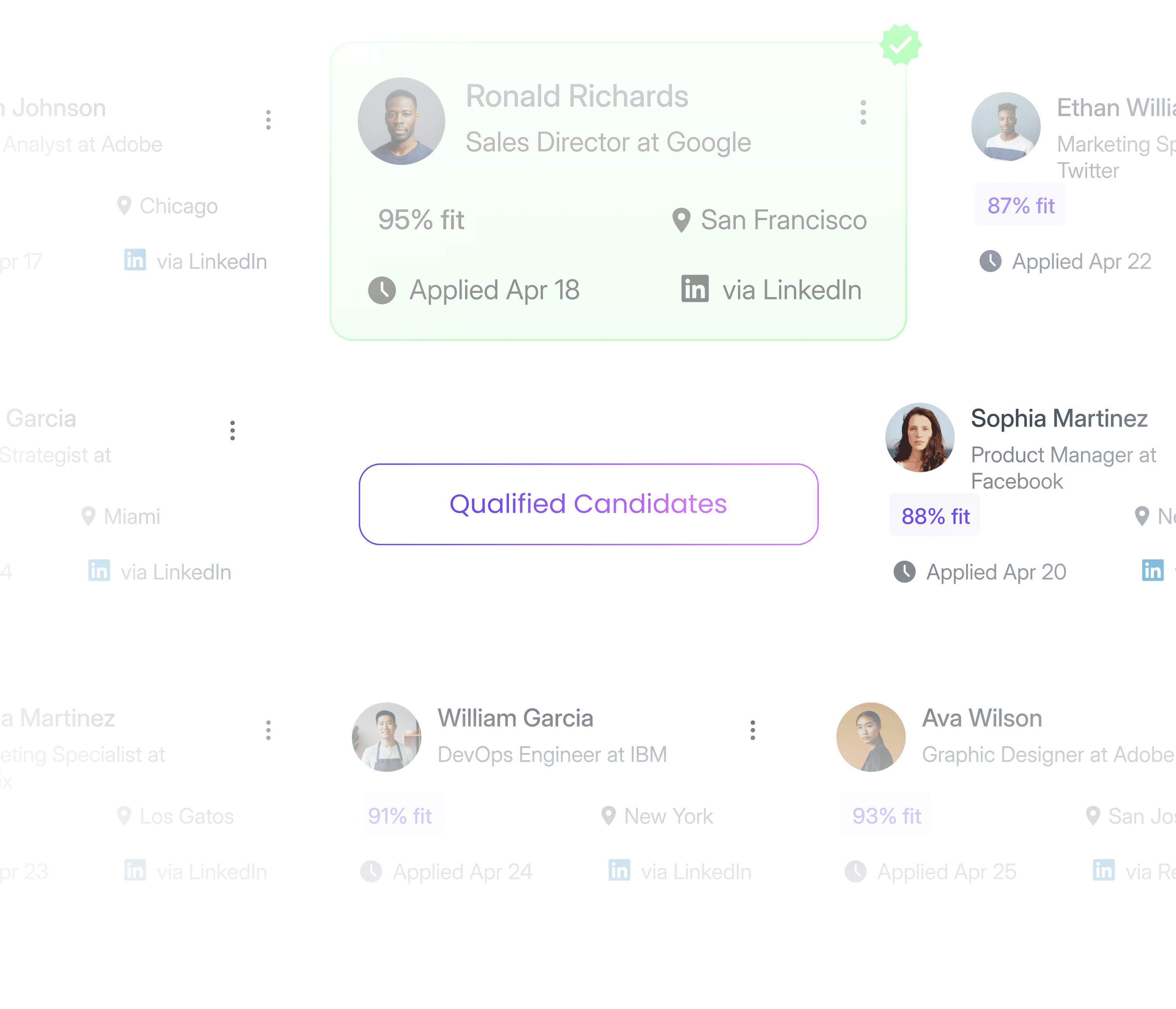 Each candidate receives a fit score (0-100) based on your company’s success profile, with a plain-English explanation of why they fit or don’t.